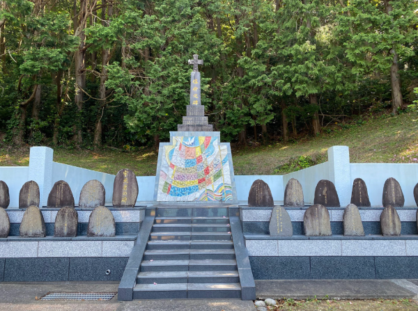 以後は、キリスト教の布教、迫害、殉教などの歴史のながれで、訪れた場所を紹介したいと思います。ザビエル以後、九州を中心にキリスト教が広まり、五島列島には1566年にアルメイダとロレソンが訪れ、奥浦に五島最初の教会が建ちました。しかし、1587年に豊臣秀吉が伴天連追放令を発布すると、全国で信者たちは迫害を受けました。1597年には、長崎西坂の丘で26人のキリスト教徒が殉教し、これらの出来事は「長崎の殉教」として海外にもよく知られています。私たちが2015年ポルトガルを旅行した時、ポルトのサン・フランシス教会に26人の殉教が展示されていたのを思い出しました。6人の宣教師と20人の日本人は、京都で石田三成に捕らえられ、大阪から長崎まで歩かされて処刑されました。西坂の丘に26人の像があり、皆晴れ晴れとした顔をしています(写真3 5月2日)。この中には、五島列島で生まれたヨハネ五島もいました。後にローマカトリック教会により聖人に列せられ、日本26聖人と呼ばれることになりました。この西坂の丘には、1981年ヨハネ・パウロ2世、2019年にフランシスコ教皇と2人のローマ法王が訪れています。