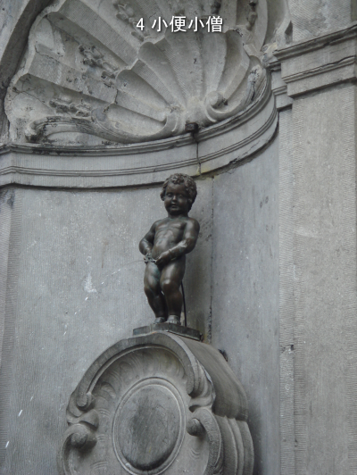 それから有名な小便小僧(写真4)。今日は裸だったが、世界中から贈られた服を、770着も持っているとか。昼は、ベルギー・ワッフルを食べたが、日本で食べるのとあまりかわらない味だったが、いろいろなトッピングがあるのが、特色だとか。