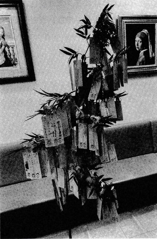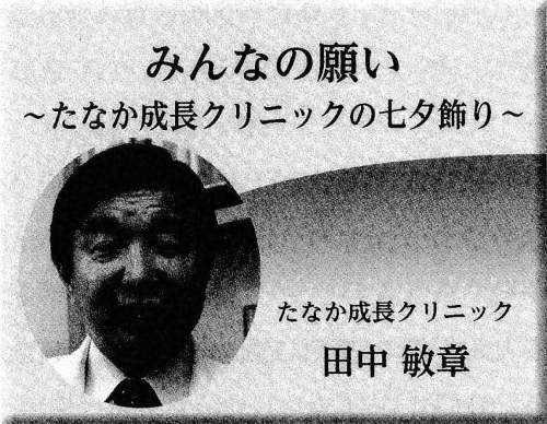 たなか成長クリニックでは、七夕が近づくと、クリニックに来た子どもたちや親御さんに短冊に願いを書いてもらって、プラスチックの笹の枝に飾る七夕飾りを行っています(写真)。
