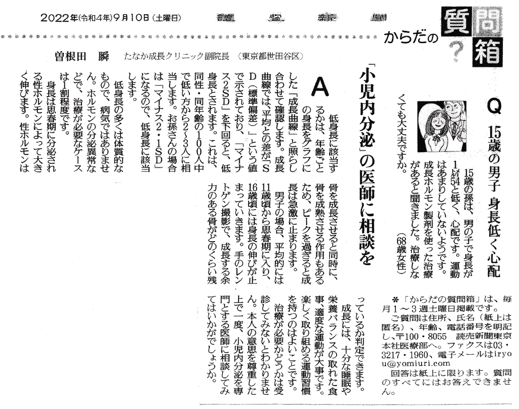 「副院長がからだの質問箱(読売新聞)に答えました」